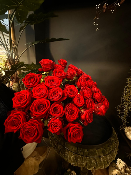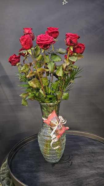 Boeket met 10 rode rozen en chocolade beertje inclusief een vaas!