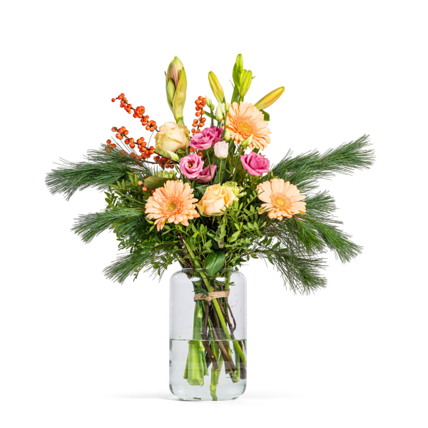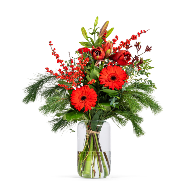 Breng warmte en sfeer in huis met onze prachtige kerstboekketten en kerststukken. Met stijlvolle combinaties van wintergroen en seizoensbloemen creëren wij de mooiste arrangementen. Of je nu kiest voor een klassiek rood kerstboeket of een kerststuk in moderne groen-witte tinten - elk stuk wordt met zorg en aandacht gemaakt.